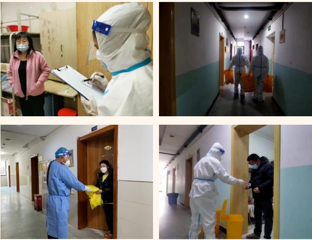 在這個集宿區(qū)內,有一群人奮戰(zhàn)在抗疫最前線。“大白”和“小藍”是他們最矚目的“通行證”、“工作證”,他們身份多樣,上演著超級“變、變、變”,他們既是細致入微的醫(yī)生助手,也是發(fā)放物資的大力水手,還是現場保障的行家里手。