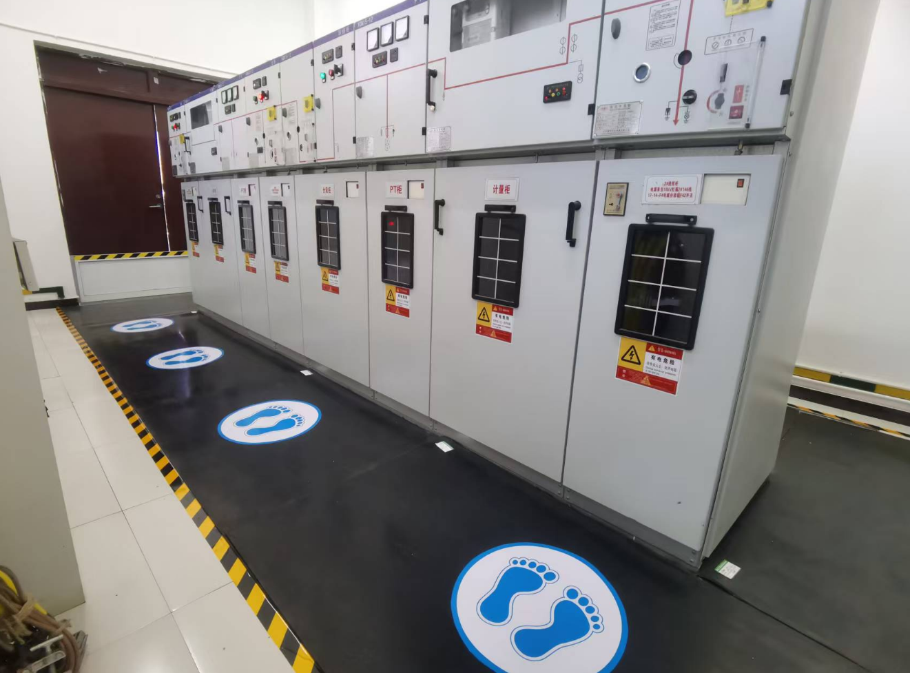 閘站作為防汛工作的重要設(shè)施,其配電房更是保障電力供應(yīng)的關(guān)鍵樞紐,安全管理責(zé)任重大。建發(fā)公司嚴(yán)格遵循GB 2893-2008《安全色》國家標(biāo)準(zhǔn),科學(xué)規(guī)劃、精準(zhǔn)施策,在5所閘站配電房的操作區(qū)域規(guī)范設(shè)置地面警示標(biāo)貼180米,安裝安全警示標(biāo)貼28個。這些標(biāo)識采用國際通用的安全色標(biāo),布局合理、醒目清晰,有效劃定了安全操作區(qū)域,為運(yùn)維人員提供了明確的操作指引,顯著降低了誤操作風(fēng)險,切實防范了觸電等安全事故的發(fā)生。