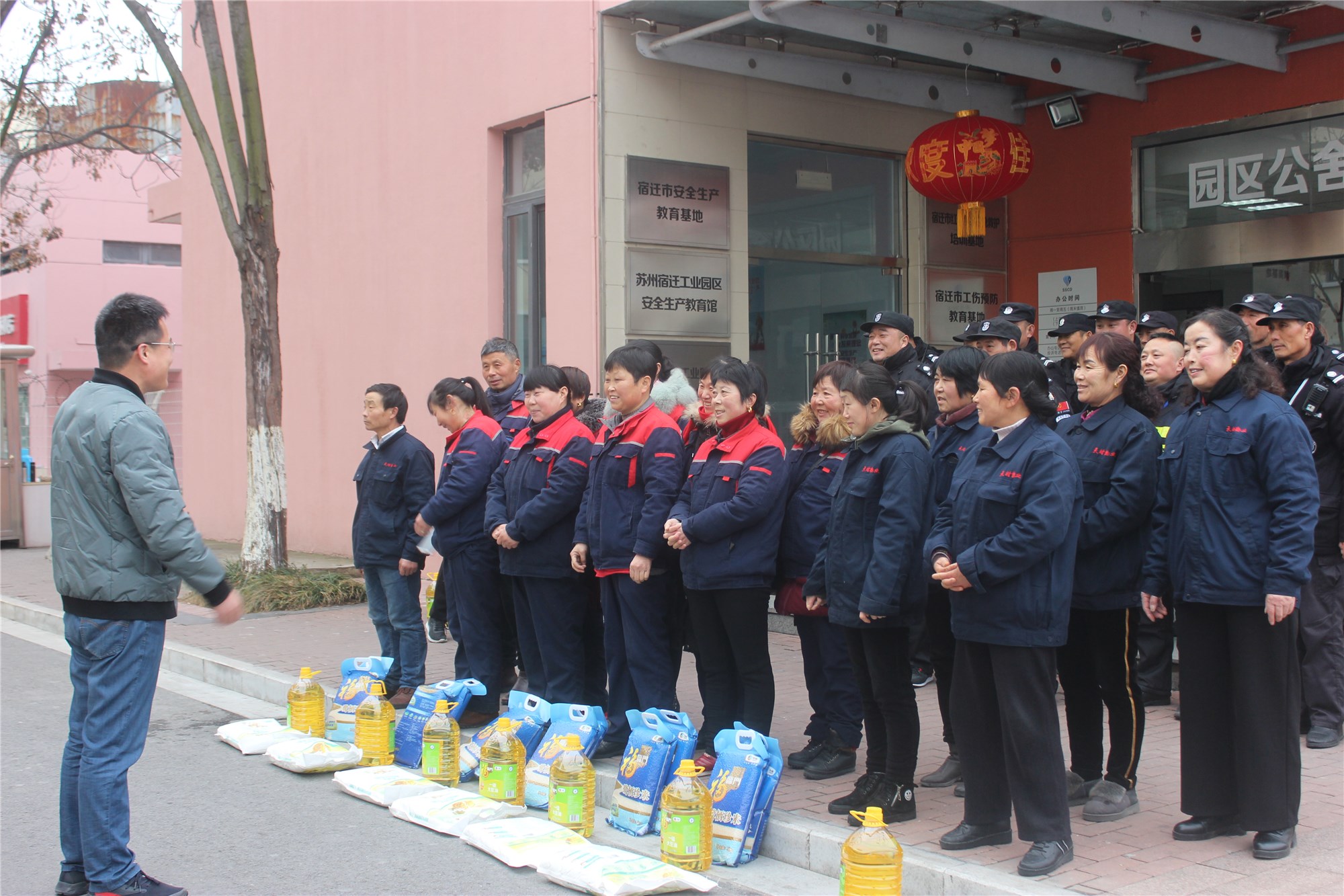 在新春佳節(jié)即將來臨之際,1月21日下午,公司副總經(jīng)理倪松慰問了奮戰(zhàn)在一線保潔及保安人員,為他們送上了米、面粉、油等慰問品。