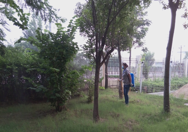 立秋以來天氣晴朗少雨,物業(yè)管理部按照園區(qū)公舍綠化養(yǎng)護(hù)計(jì)劃積極開展病蟲害防治工作,組織養(yǎng)護(hù)人員在人員流動性較少的時(shí)間段對園區(qū)公舍的花灌木、球類、綠籬等噴灑氧化樂果、阿維高氯等園林農(nóng)藥,共用30瓶農(nóng)藥,有效控制了園區(qū)公舍綠化病蟲害的發(fā)生。